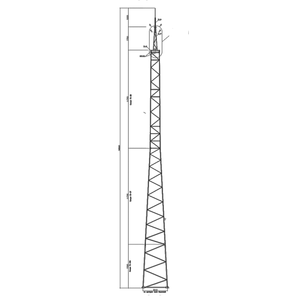 Молниеотвод стальной высотой 40,2 м. Материал конструкций: углеродистые стали классов С235, С245, С255 (3сп/пс-5) и низколегированные стали класса С345 (09Г2С-12).