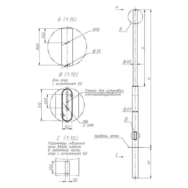 При подземном подводе кабельного оборудования в нижней части опоры ТП предусмотрено наличие ревизионного лючка.